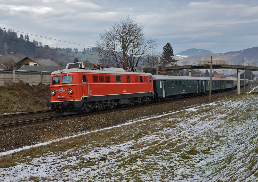 Heute den 15.12.2012 war die 1110 505 mit dem sehr gut besuchten SD 14003 von Wien nach Graz unterwegs, aufgenommen in Stübing.