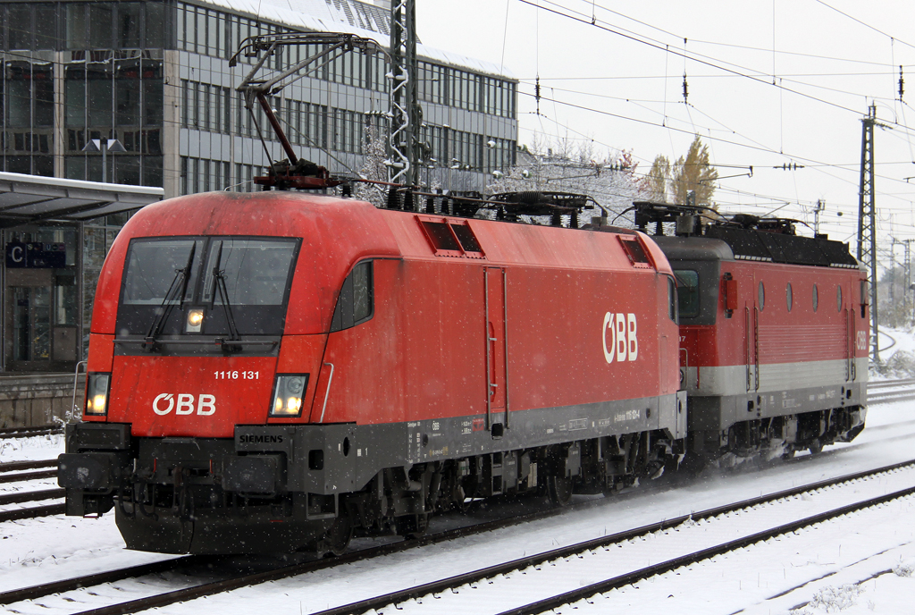 Die 1116 131 und 1144 217 fahren Lokzug durch München Heimeranplatz am 28.10.2012