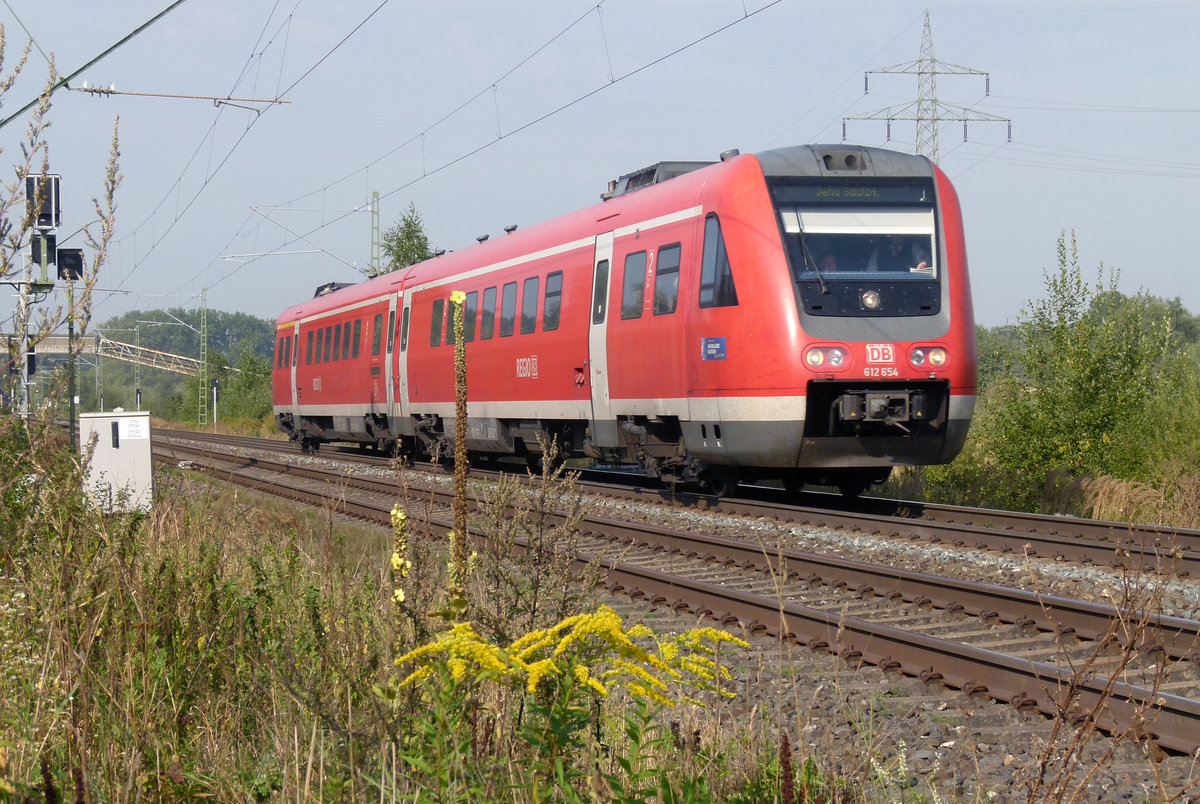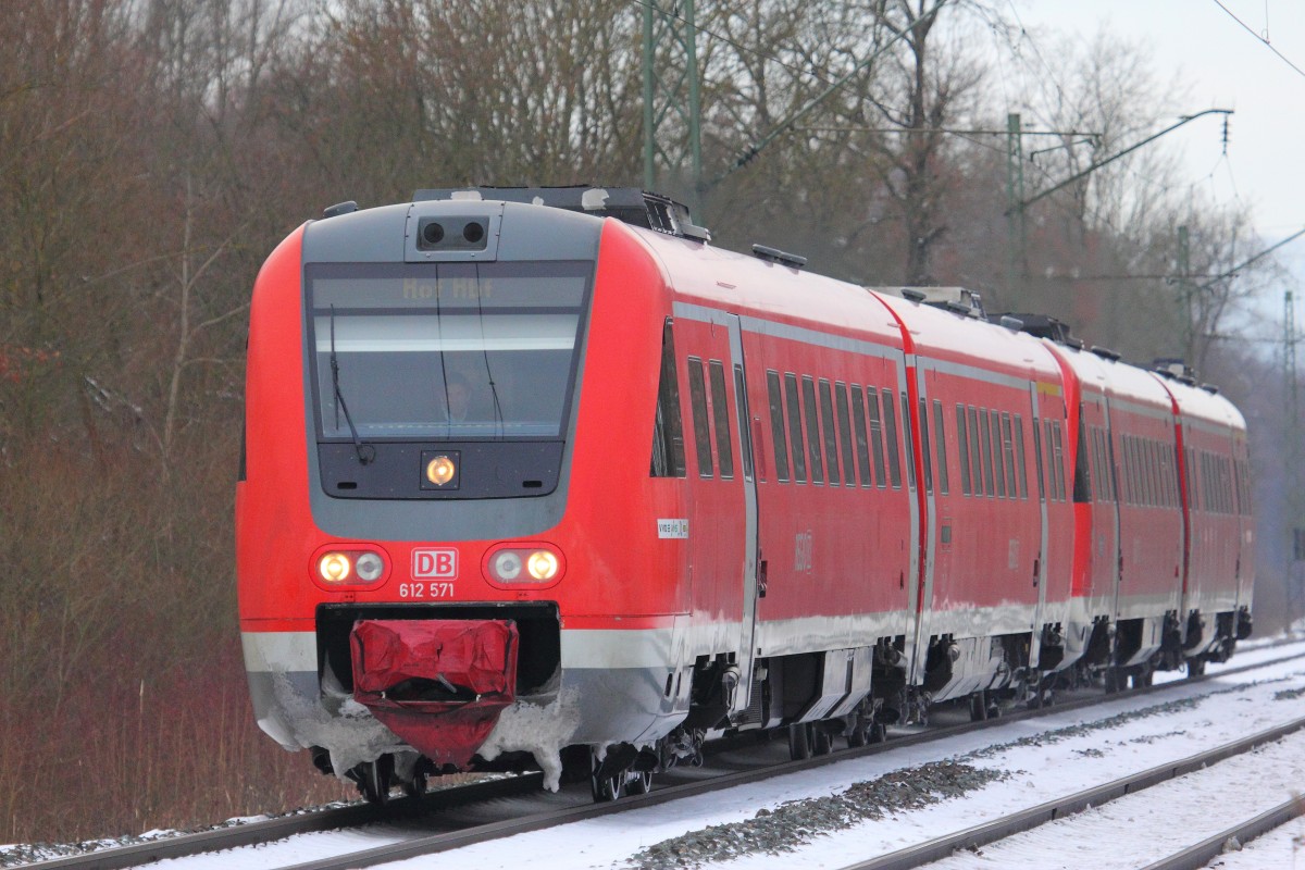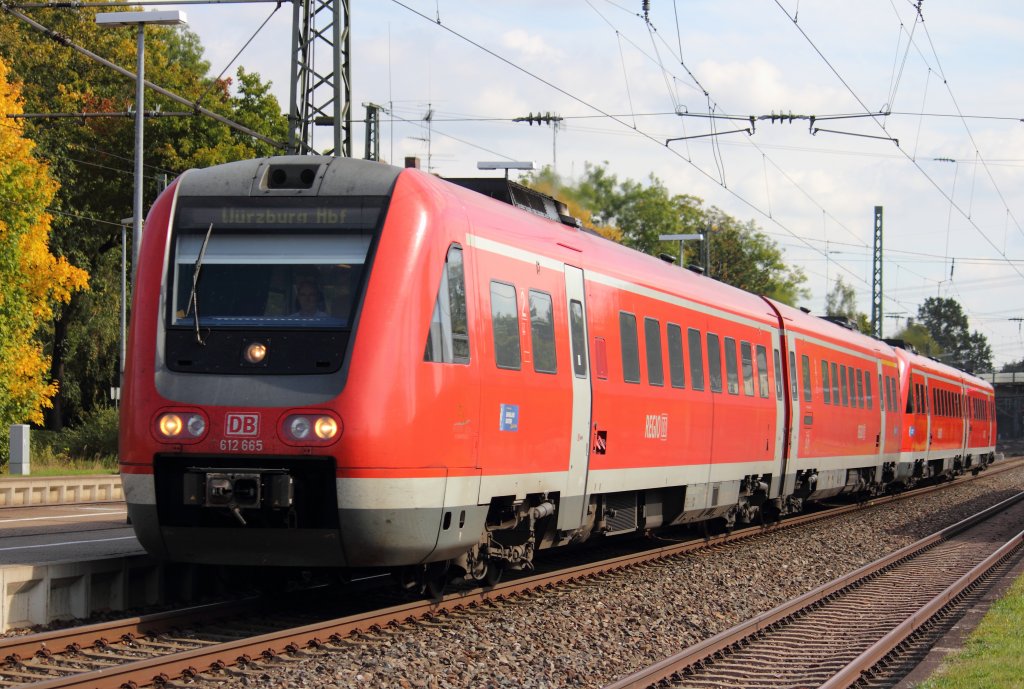 612 154 ist als RE Würzburg - Hof unterwegs. In etwas mehr als 5 Kilometern wird der Zielbahnhof erreicht sein.