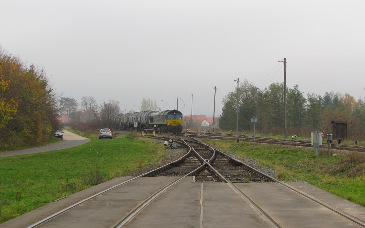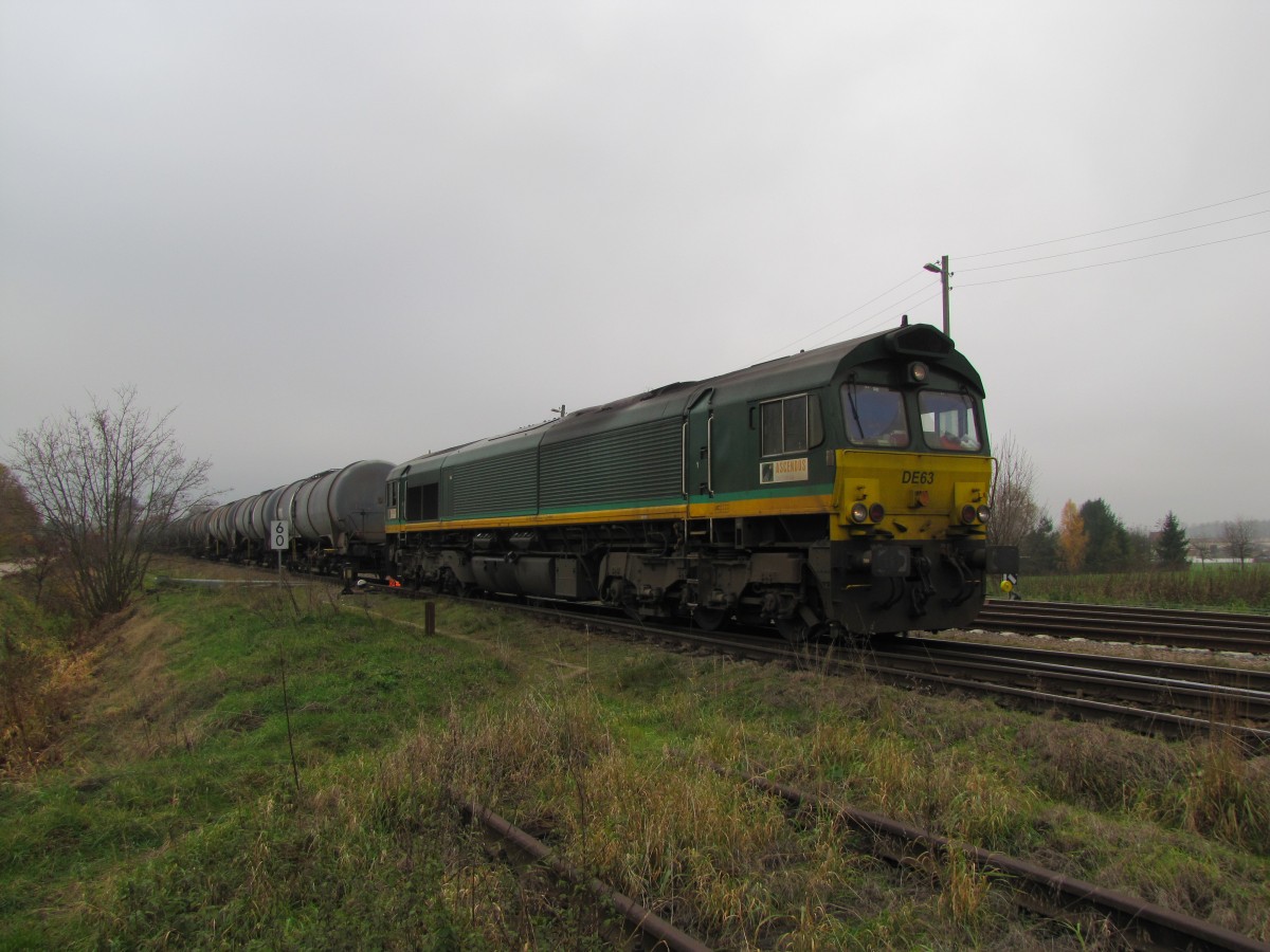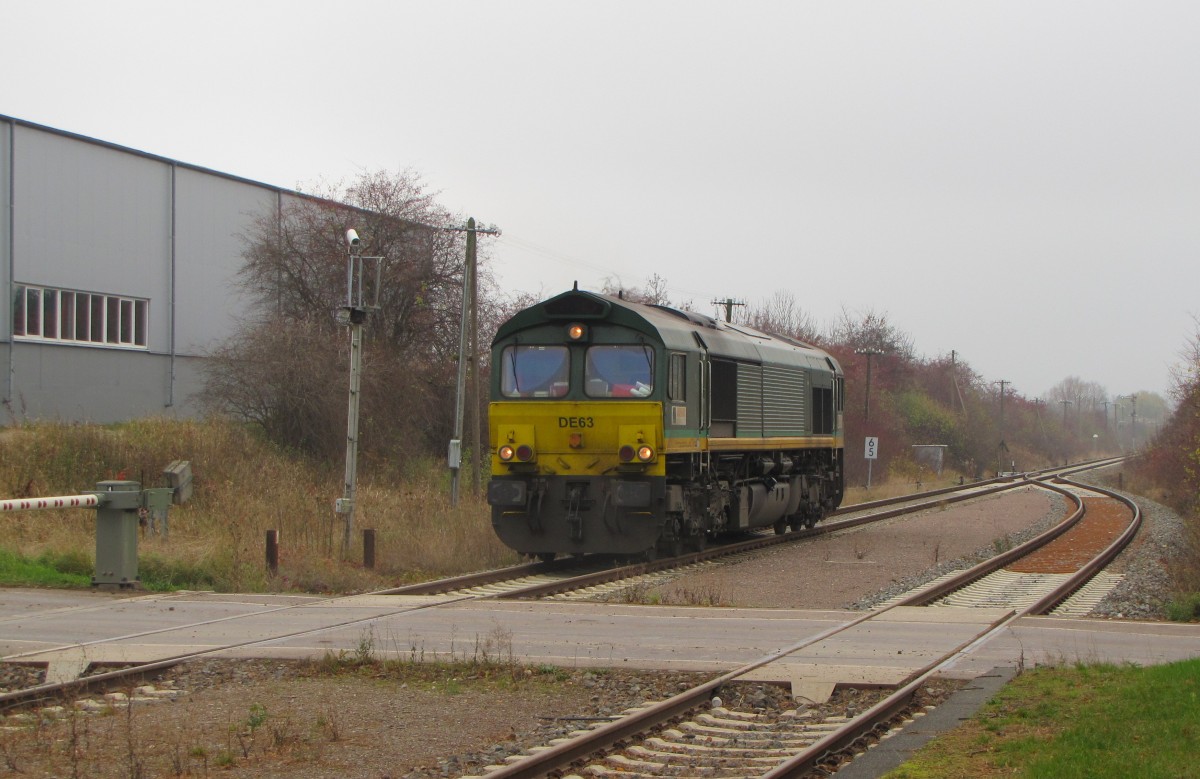 RheinCargo DE 63 am 15.11.2013 beim umsetzen in Emleben. Sie brachte an dem Tag Kesselwagen aus dem dortigen Tanklager nach Großkorbetha. Frank Thomas
