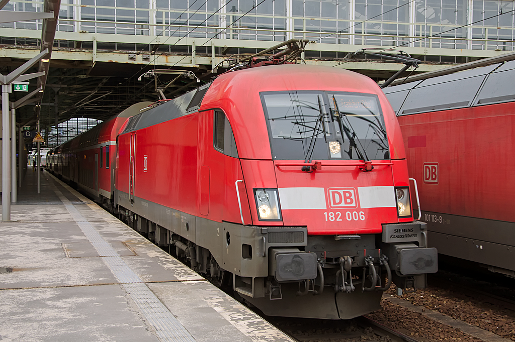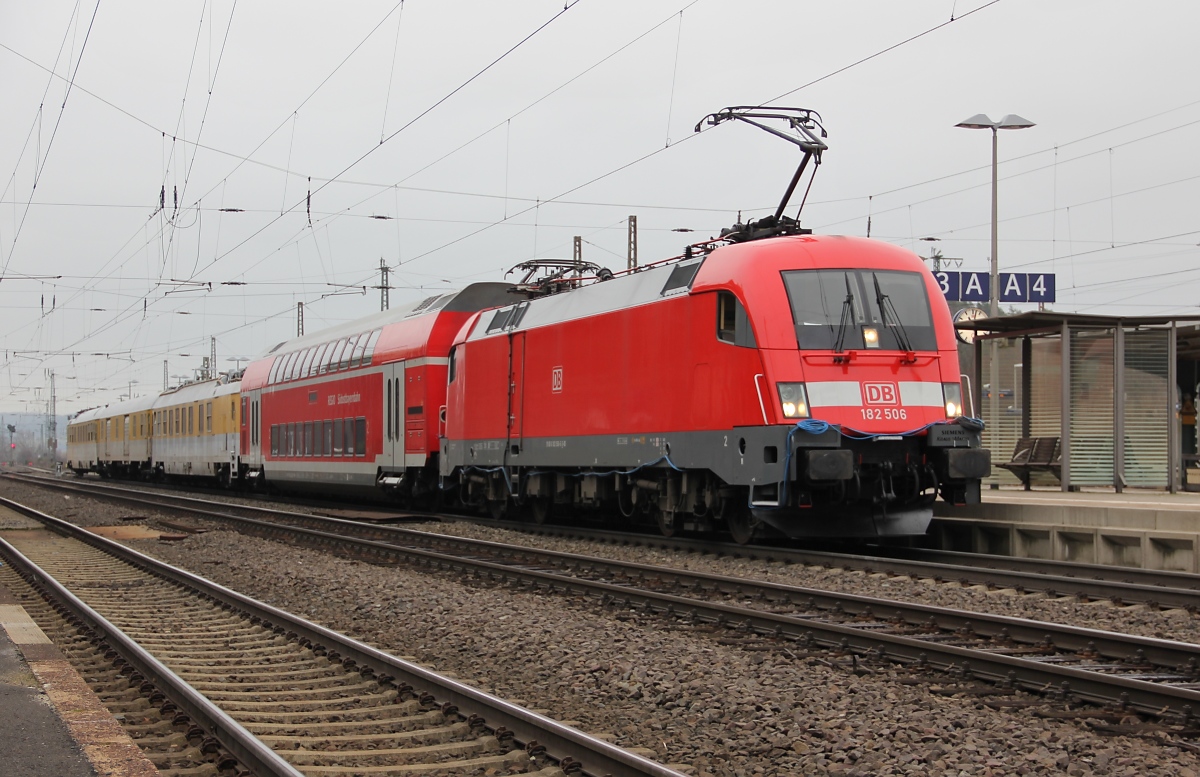 Im direkten Blockabstand dann ein RE 1-Leerpark bereits modernisiert gezogen von 182 012, welcher einen Moment warten durfte auf die Ausfahrt des Kohlenzuges aus Gleis 3. 07.03.13 Alexander Wiemer