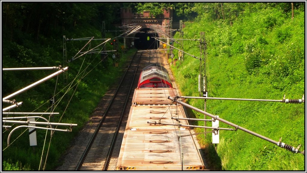Tunnelblick zurück, was am Tunnelausgang so raucht ist die Abgasfahne der BEG D5, die wohl etwas Öl mit verbrennt, wenn man das Blau so richtig deuten kann. 9.5.2013 Andreas Strobel