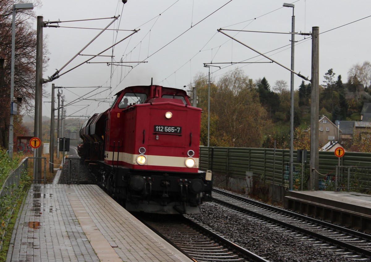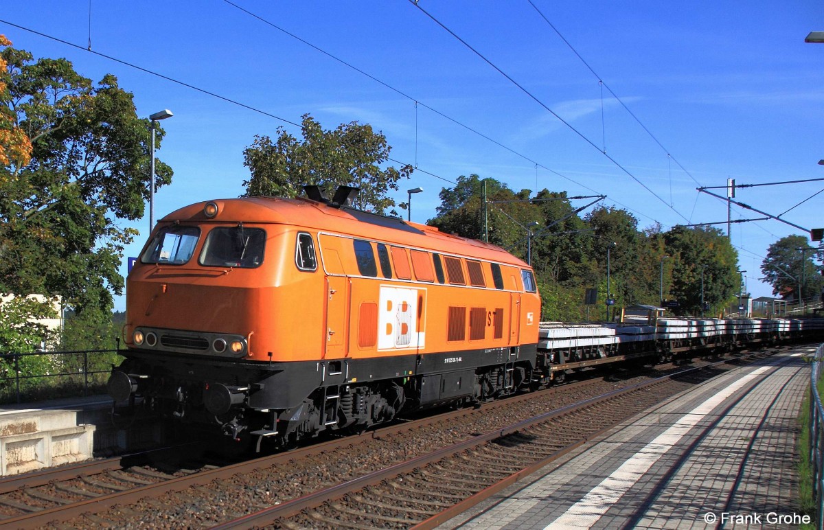 BBL 225 100-7 bei der Durchfahrt Hp. Ruppertsgrün vor Ganzzug Flachwagen mit Schwellen in Richtung Plauen, KBS 510 Dresden - Hof, fotografiert am 28.09.2013 Frank Grohe