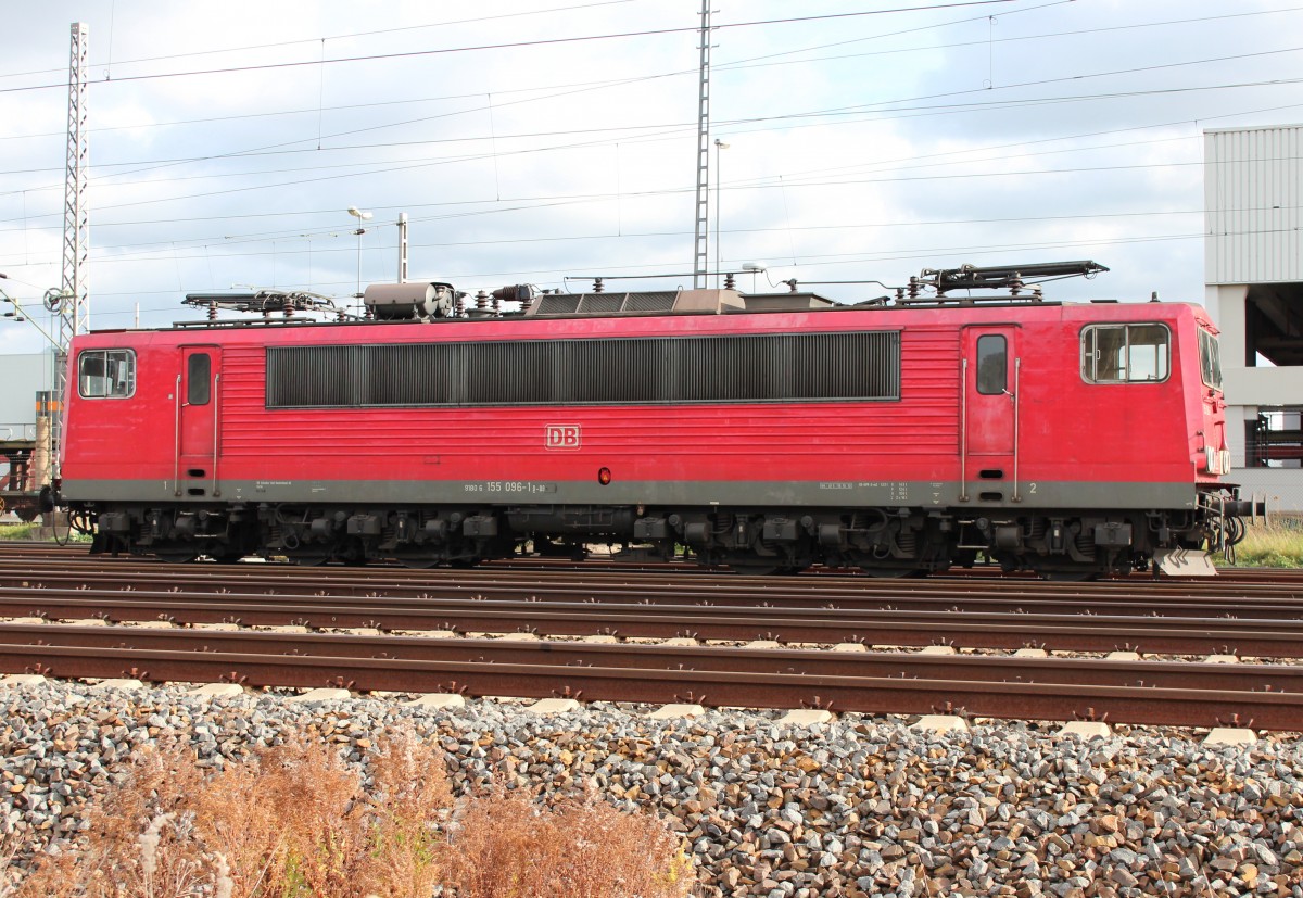 155 096-1 steht am 29.10.2013 abgebügelt vor dem VW-Werk in Mosel und wartet auf die nächste Aufgabe. Das besondere ist die Maschine stand schon seit Sonntagabend vor dem Werk, denn normalerweise stehen solche Maschinen nicht über einen längerem Zeitraum vor dem Werk. Matthias Hartmann