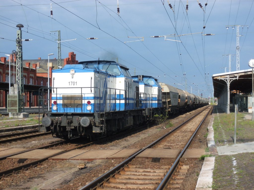 1701 (203 110-2) & 1702 (203 130-0) D&D Eisenbahngesellschaft mbH mit einem Getreidezug in Vietznitz und fuhren in Richtung Nauen weiter. Netten Gruß an den Tf! 28.08.2013 Stephan Kemnitz