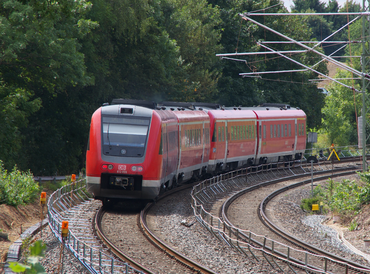 Im Jahr 2013 wurde der Fahrdraht zwischen Plauen ob. Bahnhof und Hof verlegt. Am 17.08.2013 waren die Bauarbeiten schon weit voran geschritten, denn ab Fahrplanwechsel Dezember 2013 soll der elektrische Betrieb losgehen. Dies wurde auch geschafft. 612 485 und 612 055 sind als IRE von Dresden nach Nürnberg unterwegs und erreichen gleich in Reuth / Vogtland den Scheitelpunkt der Strecke. Bahnstrecke 6362 Leipzig - Hof Erhard Pitzius