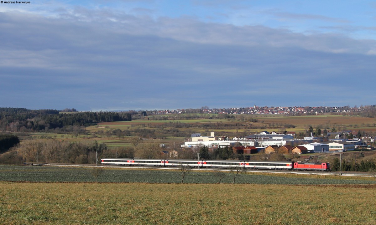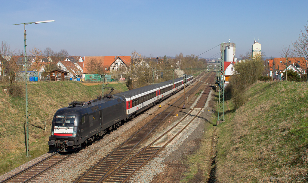 Anstatt der angekündigten 115 293 bespannte am 29. März 2013 die schwarze MRCE-Leihlok 182 509 den IC 183 (Stuttgart Hbf - Zürich HB). Bei der Durchfahrt von Bondorf konnte ich die seltene Bespannung auf den Chip bannen. Pascal Ost