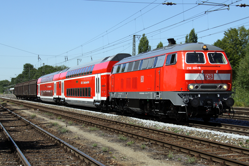 Am 28.9.13 stand die 218 387, welche nach Kempten ausgeliehen ist, im Karlsruher Hauptbahnhof abgestellt. Zuvor kam die Lok über die Rheinbahn angerollt. Seegurke