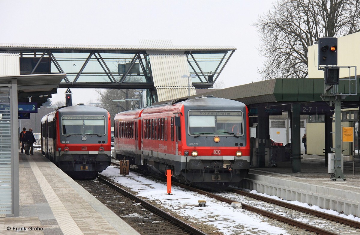 Südostbayernbahn DB Regio 628 + 928 627 als RB 27316 Passau - Mühldorf, KBS 946 Passau - Mühldorf, Rottalbahn, fotografiert bei der Ausfahrt aus dem Bhf. Bad Birnbach am 16.03.2013 Frank Grohe