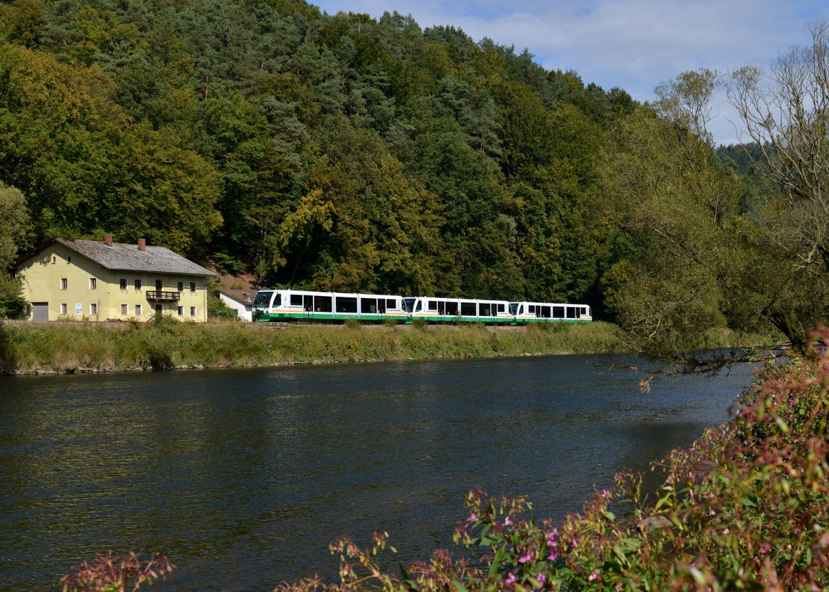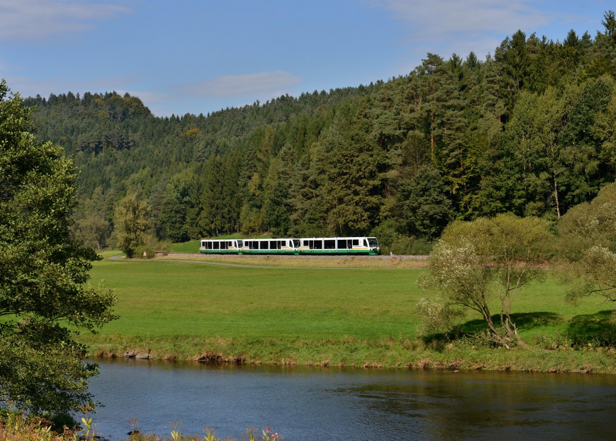 Nur noch selten sieht man die RegioSprinter (Baureihe 654) der Vogtlandbahn. Desiro und RegioShuttle haben die meisten Aufgaben übernommen. VT 37 ist auf der Relation Hof - Falkenstein unterwegs und ist damit wieder auf der ehemaligen Stammstrecke anzutreffen. Vor Fahrplanwechsel liefen die Züge auf der Relation Hof - Zwickau, die jetzt als RE mit 143er und Dostos gefahren wird.