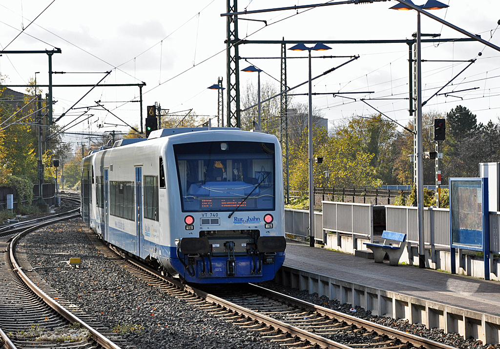 Der VT 6.004 der Rurtalbahn ist hier im Auftrag der DB als RB 39 nach Dalheim beim verlassen der Bahnsteighalle im Mönchengladbacher Hbf zusehen. 21.12.2013 Andreas Strobel