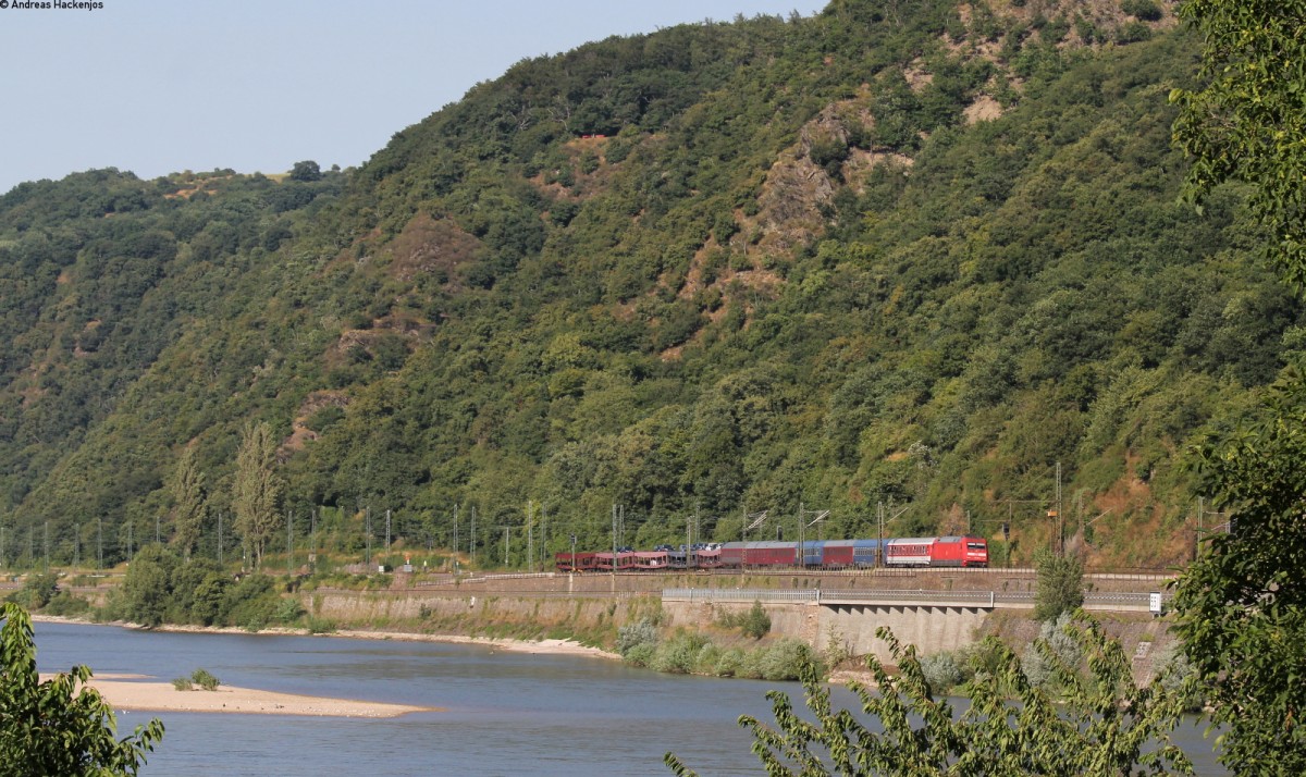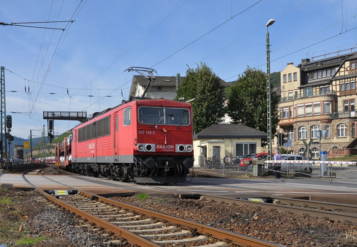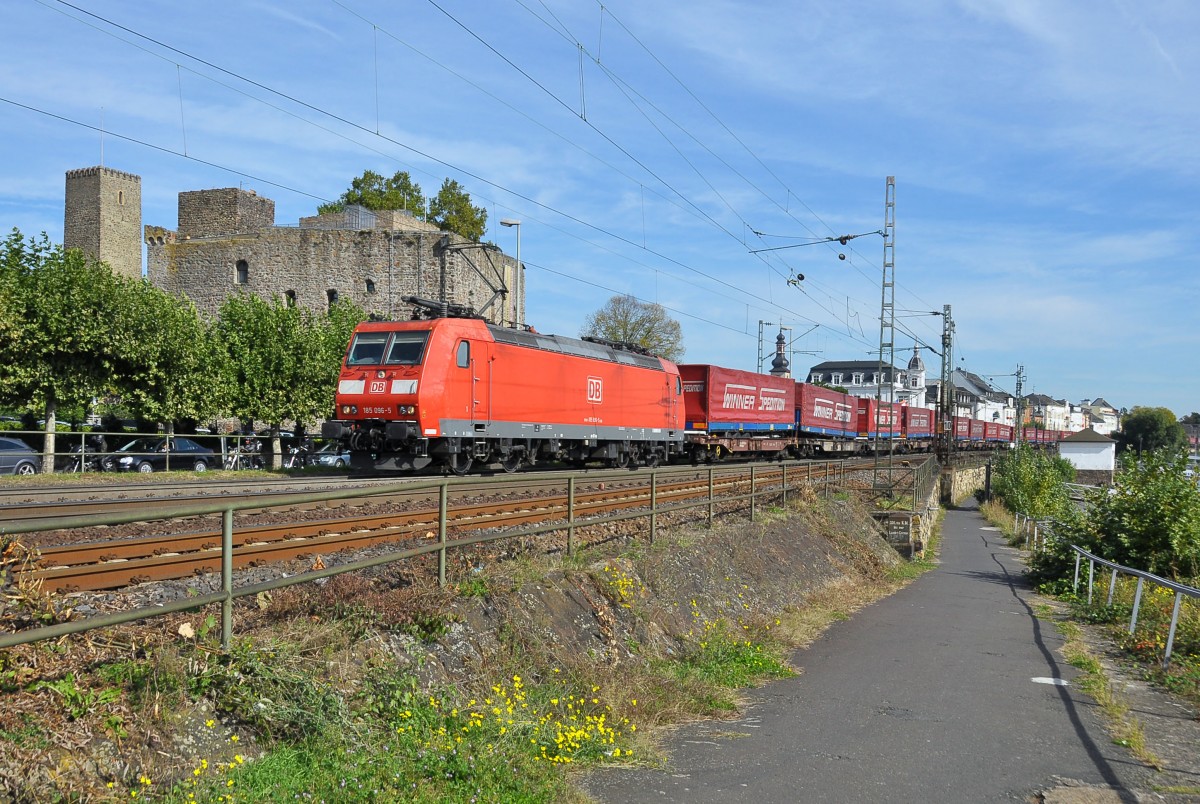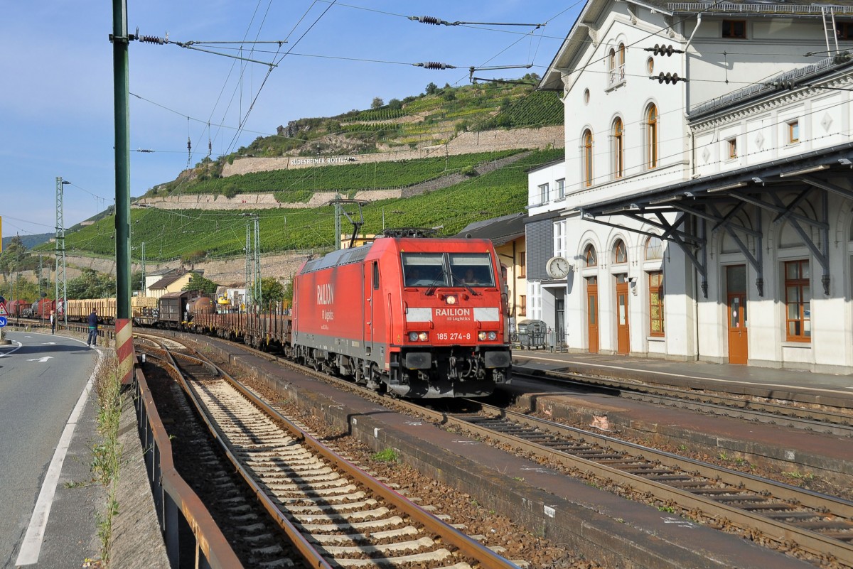 185 096 mit einem Winner KLV auf der rechten Rheinstrecke in Bahnhof von Rüdesheim am Rhein.Aufgenommen am Tag der Deutschen Einheit den 3.10.2013 Daniel Powalka
