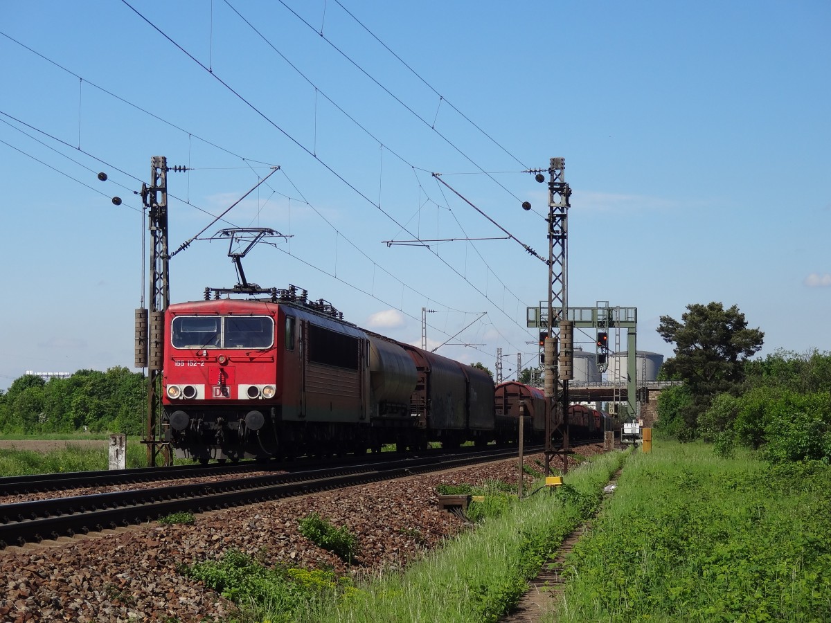 Eine Lok der Baureihe 155 nämlich die 155 152 zog am 18.5.13 die Kehler Übergabe an den Ort Kehl.