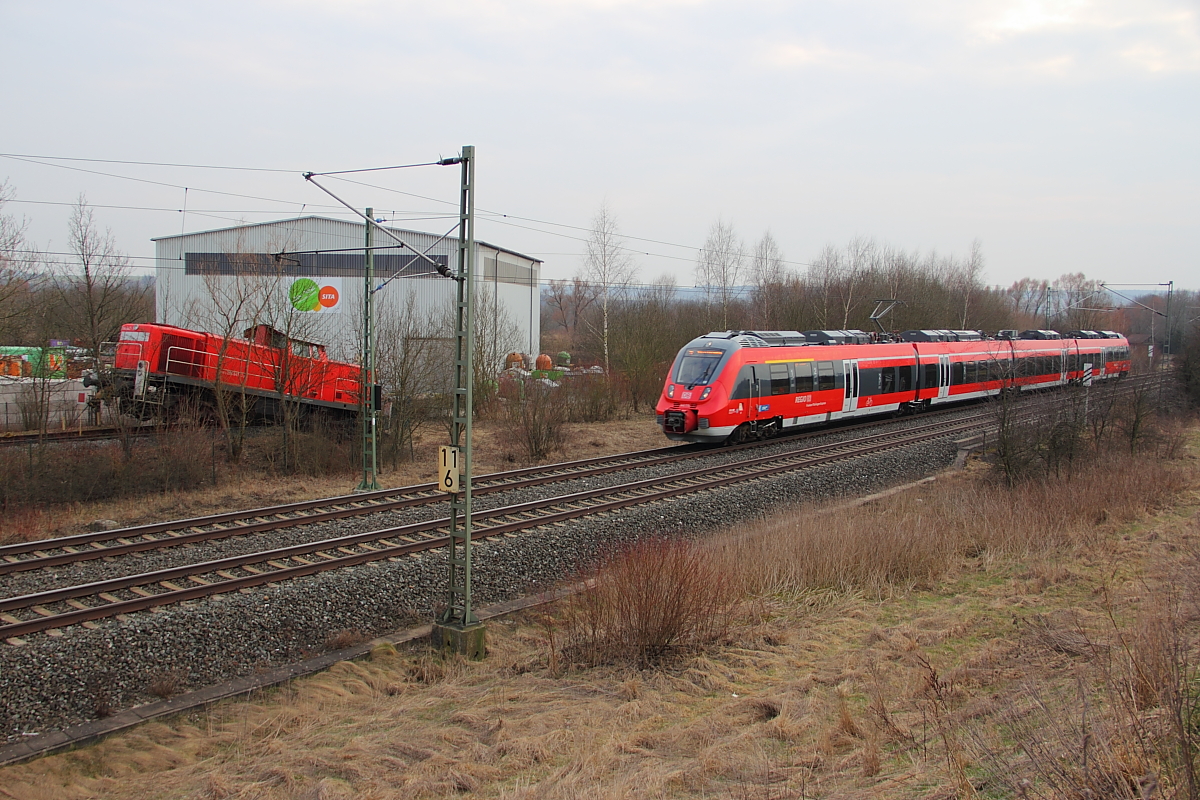 Unweit des Fürther Hauptbahnhofs wurde 442 218 und ein weiterer Talent II im Einsatz für die S-Bahn Nürnberg fotografiert.