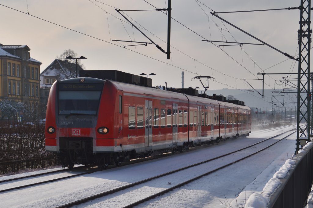 In Dallau ist so eben der 425 229-2 als S1 nach Homburg (Saar) Hbf eingefahren und wird nach einem kurzen halt seinen Weg fortsetzen. Freitag 18.1.2013 Andreas Strobel