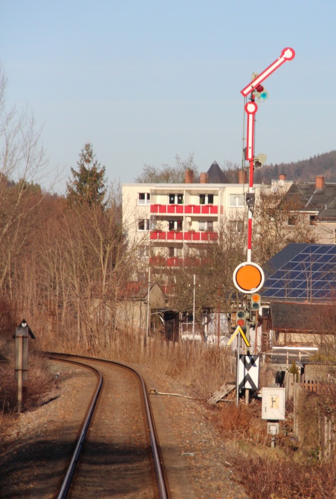 31.12.2013 Wünschendorf (Elster). Ausfahrsignale Ri Gera, dem Tf über die Schulter geknipst. So schön, da kann man die abgeschnittenen Laternenmaste verschmerzen... matthias manske