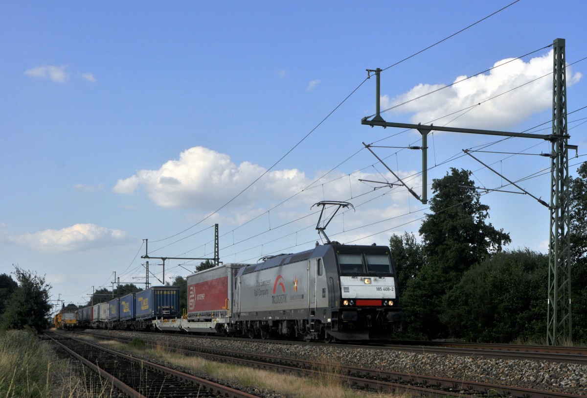 ist in der Bauernschaft Schollbruch mit einem Container Zug am 14.08.2013
