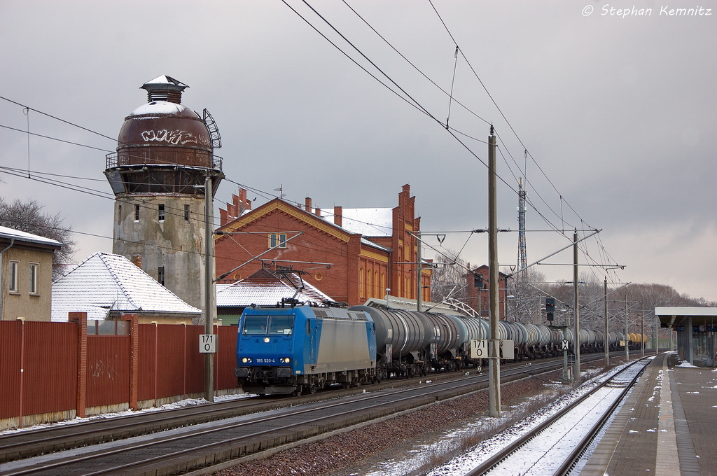 185 520-4 Alpha Trains für CFL Cargo Deutschland GmbH mit einem Kesselzug "Dieselkraftstoff oder Gasöl oder Heizöl (leicht)" in Rathenow und fuhr in Richtung Stendal weiter. Netten Gruß an den Tf! 08.02.2013 Stephan Kemnitz