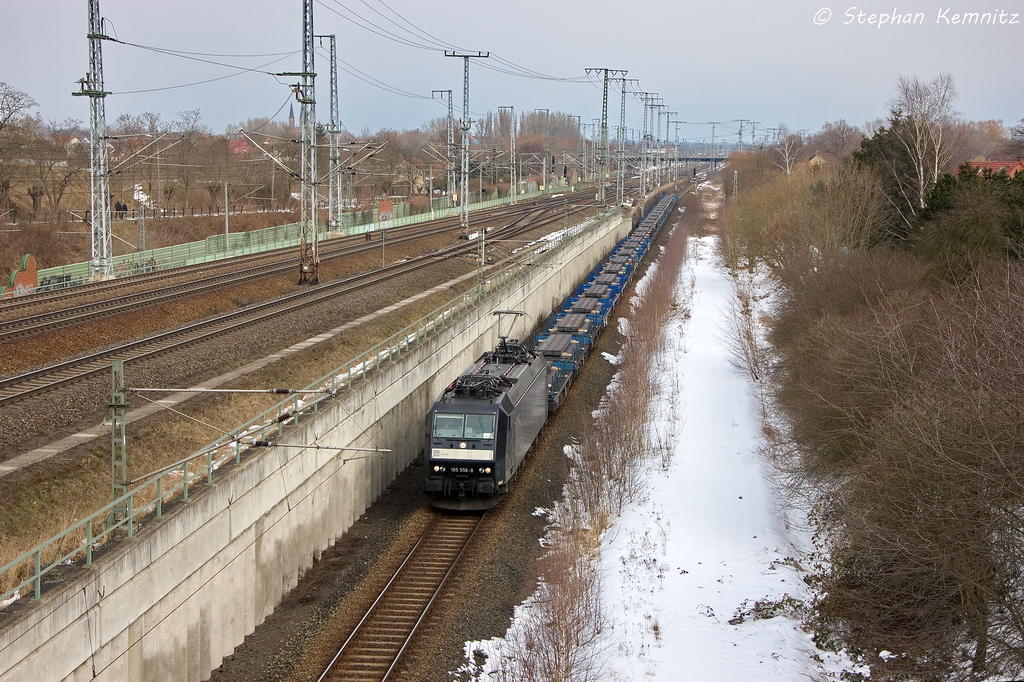 185 556-8 MRCE Dispolok GmbH für CFL Cargo Deutschland GmbH mit einem Stahlzug in Stendal(Wahrburg) und fuhr in Richtung Wolfsburg weiter. 30.03.2013 Stephan Kemnitz