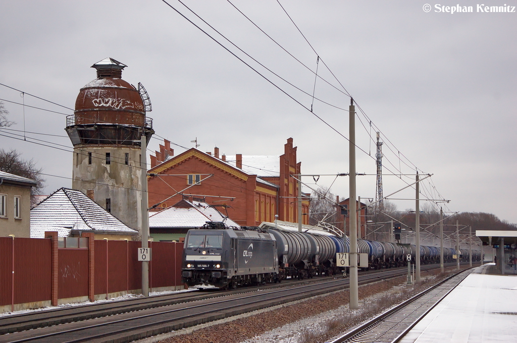 185 566-7 MRCE Dispolok GmbH für CFL Cargo Deutschland GmbH mit einem Kesselzug "Dieselkraftstoff oder Gasöl oder Heizöl (leicht)" in Rathenow und fuhr in Richtung Stendal weiter. 18.01.2013 Stephan Kemnitz