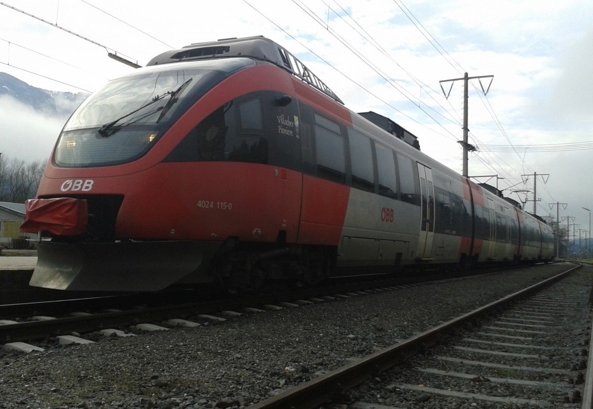 4024 097 als R 4613 (Lienz - Villach Hbf) wartet in Dellach im Drautal auf die Kreuzung mit railjet 531 Richtung Lienz, 5.12.2014