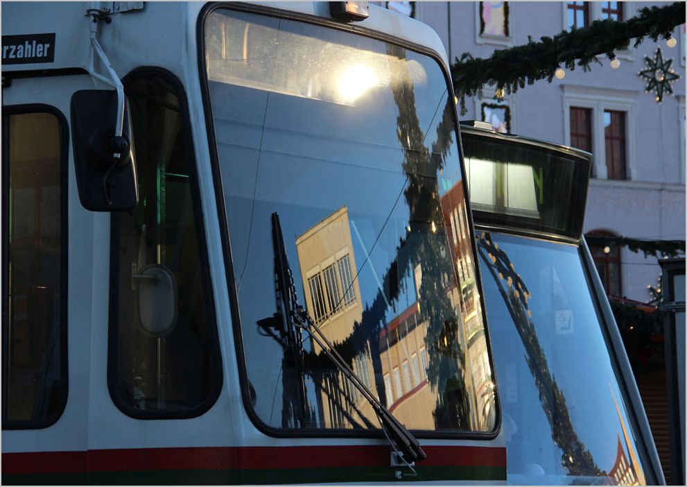 Vor der ehemaligen Wagenhalle Kriegshaber steht GT5 536 als Linie 2 abfahrbereit in Richtung Hauptbahnhof (Anfang April 1988). Die Wagenhalle blieb als Baudenkmal erhalten. Horst Lüdicke