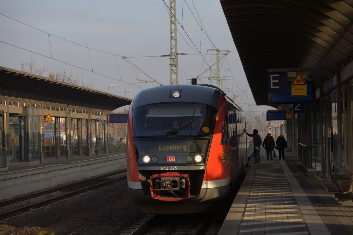 Ist es wahr, ein Desirio der DB Regio in Lutherstadt Wittenberg zur Fahrt nach Eilenburg ? Ja, hier ist 642 225 allerdings als Nikolaussonderzug nach Leipzig unterwegs, auf der Heidebahn.06.12.2014 09:44 Uhr. Siegfried Heße