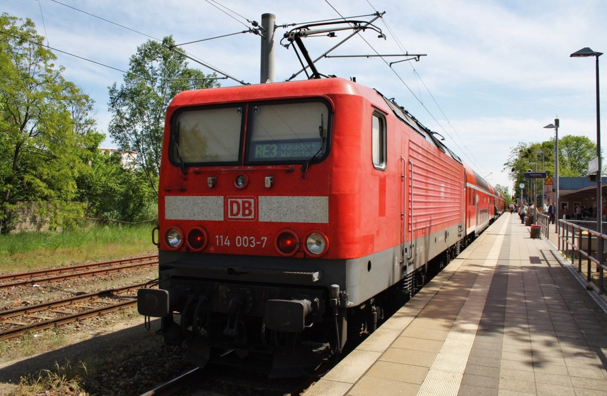 Hier ein RE3 (RE18346) von Wünsdorf-Waldstadt nach Schwedt(Oder), am 8.2.2014 zwischen Vierradener Chaussee und Helbigstraße in Schwedt(Oder). Zuglok war 112 120. Alexander