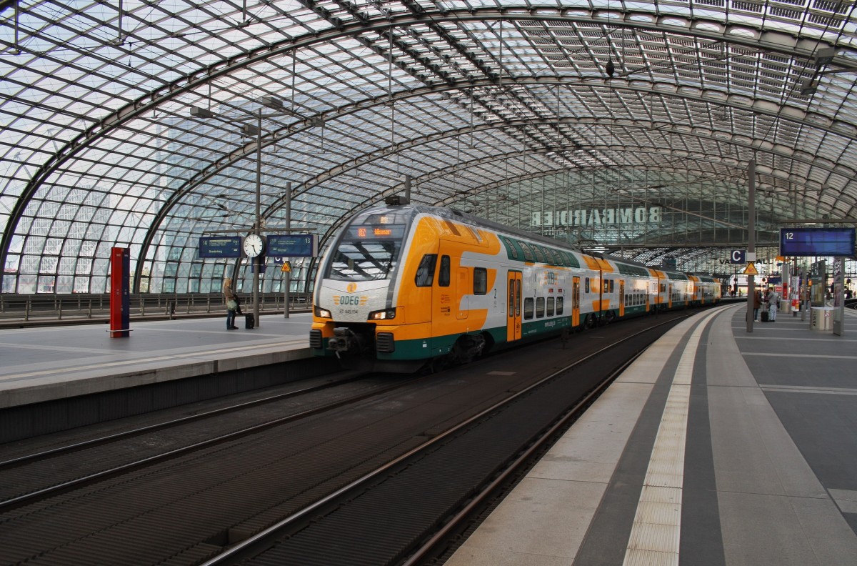 Hier 445 105-0 als RE2 (RE83973) von Cottbus nach Wittenberge, bei der Ausfahrt am 27.6.2014 aus Berlin Friedrichstraße.