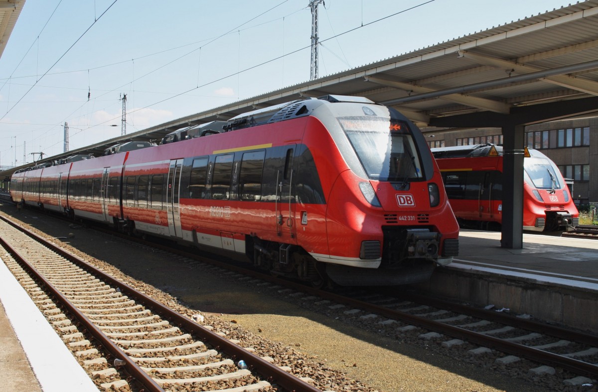 Hier 442 331-5 als RE7 (RE93126) "Airport-Express" von Berlin Lichtenberg nach Berlin Schönefeld Flughafen, dieser Triebzug stand am 19.7.2014 in Berlin Lichtenberg. Alexander