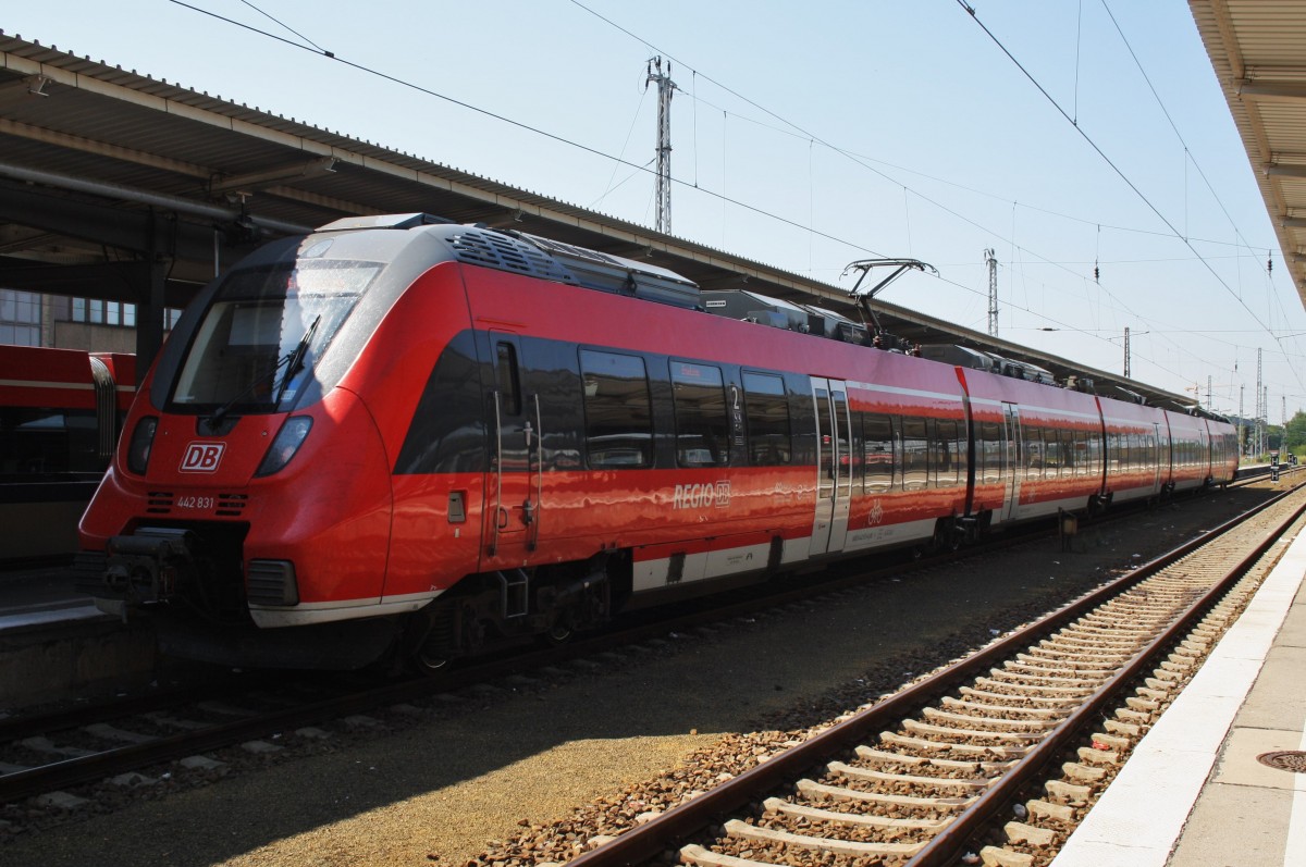 Hier 442 831-4 als RE7 (RE18714) "Airport-Express" von Berlin Lichtenberg nach Berlin Schönefeld Flughafen, dieser Triebzug stand am 19.7.2014 in Berlin Lichtenberg. Alexander