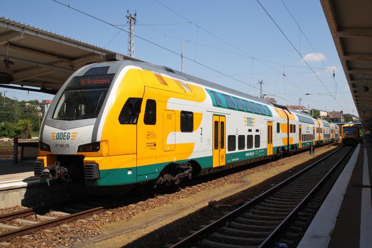Hier links 650 070-5 als RB60 (RB79553) von Berlin Lichtenberg nach Frankfurt(Oder) und rechts 445 110-0 als RE2 (RE92966) von Berlin Lichtenberg nach Cottbus, diese beiden Triebzüge standen am 19.7.2014 in Berlin Lichtenberg Alexander