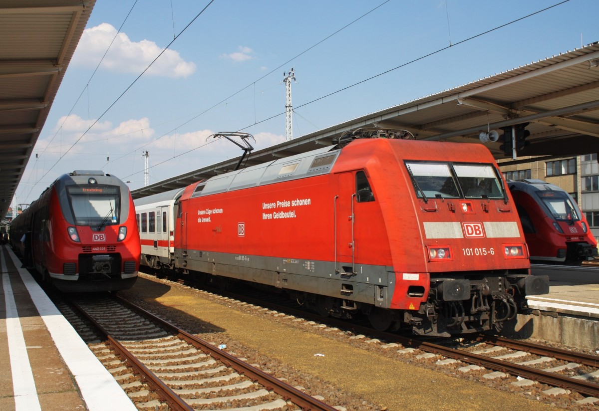 Hier links 442 331-5 als RE7 (RE93126) "Airport-Express" von Berlin Lichtenberg nach Berlin Schönefeld Flughafen, in der Mitte 101 015-6 mit EC248 "Wawel" von Wroclaw Glowny nach Berlin Hbf.(tief) und rechts 442 637-5 und 442 132-7 als RB14 (RB93929) "Airport-Express" von Berlin Lichtenberg nach Berlin Schönefeld Flughafen, diese Züge standen am 19.7.2014 in Berlin Lichtenberg. Alexander