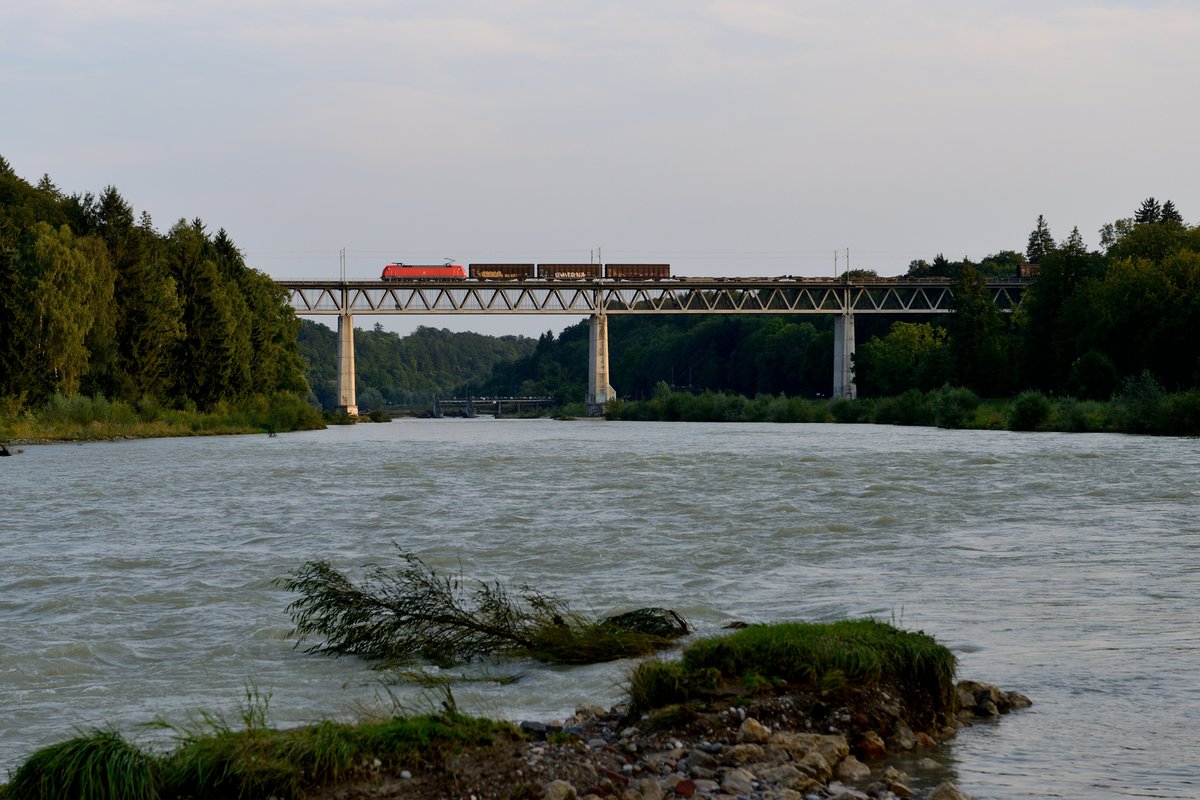 Am Abend des 09. August 2014 konnte eine unbekannte Lok der Baureihe 152 mit dem werktäglichen EZ nach Rosenheim auf der Grosshesseloher Brücke fotografiert werden. Christoph Schneider