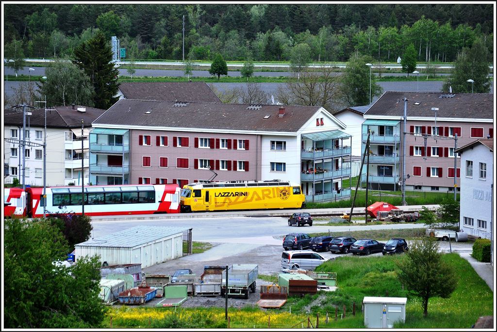 Ge 4/4'' 617 ''RE-Power'' am 20.6.2014 in Chur mit dem GEX 903. Seit die Glacier-Express im Rheintal nicht mehr doppelt geführt werden, reicht auch eine Ge 4/4'' für die Traktion aus. Silvio Jenny