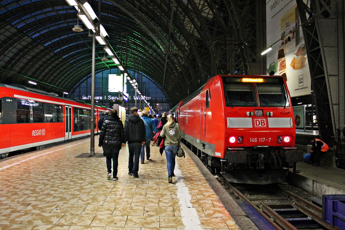 Am Abend des 22.11.2014 stand die modifizierte 146 117-7 mit dem RE 4162 (Frankfurt (Main) Hbf - Kassel Hbf) im Startbahnhof und wartet auf die Abfahrt. Tobias Schmidt