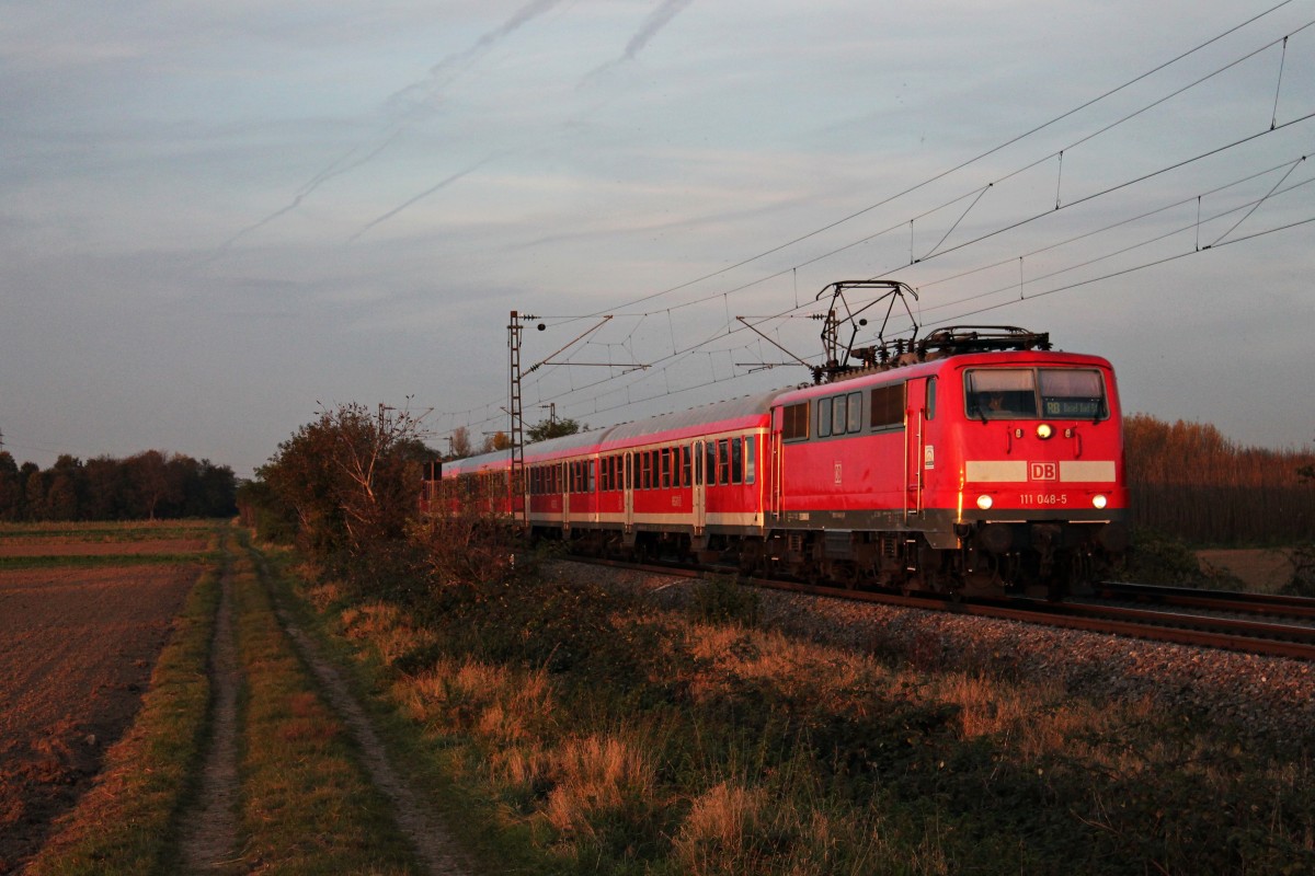Am 31.10.2014 fuhr 111 048-5 mit einer RB (Offenburg - Basel Bad Bf) bei Buggingen ihrem nächsten Zwischenhalt in Müllheim (Baden) entgegen. Tobias Schmidt