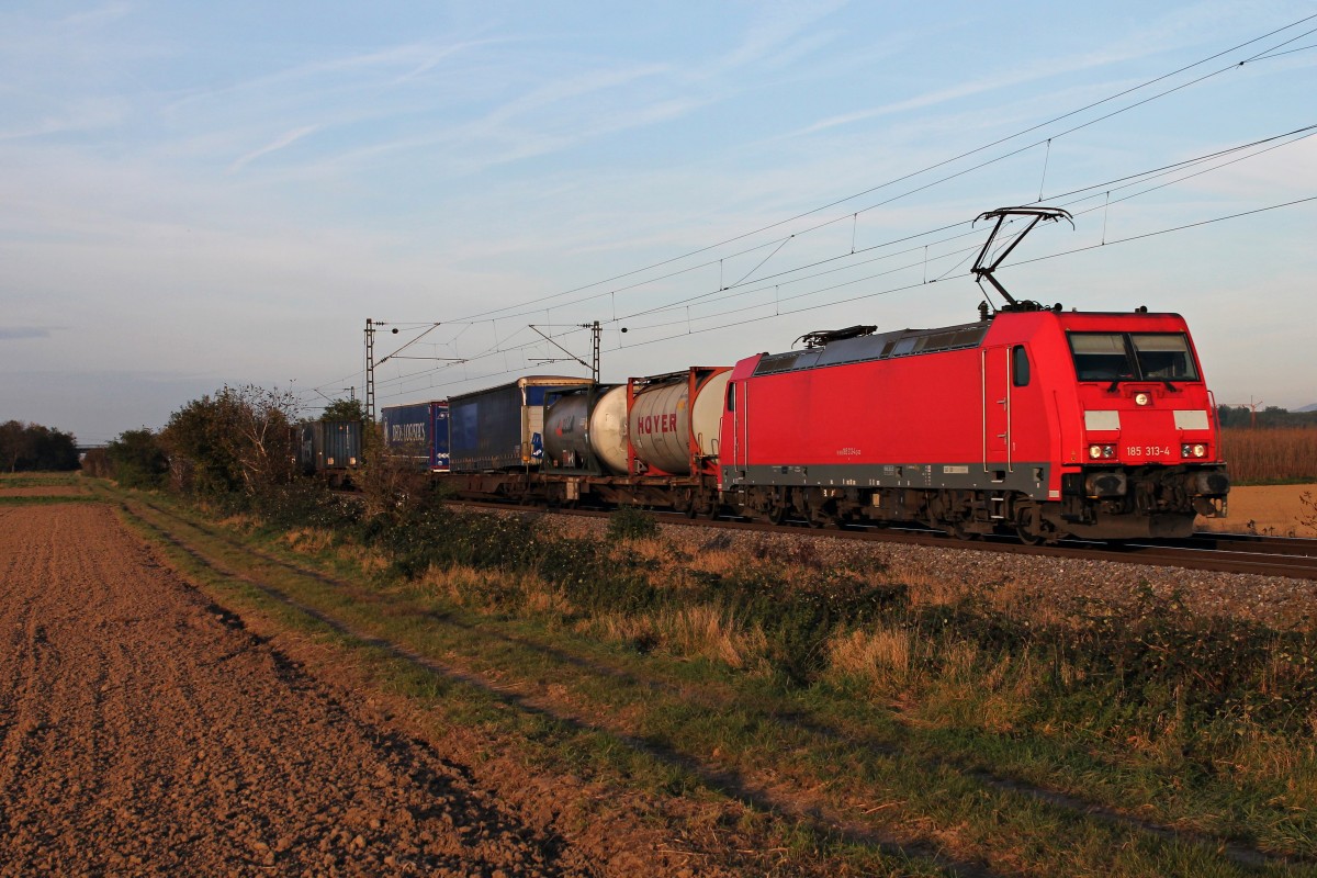 Am späten Nachmittag des 31.10.2014 fuhr 185 313-4 mit einem Containerzug südlih von Müllheim (Baden) in Richtung Katzenbergtunnel/Basel. Tobias Schmidt