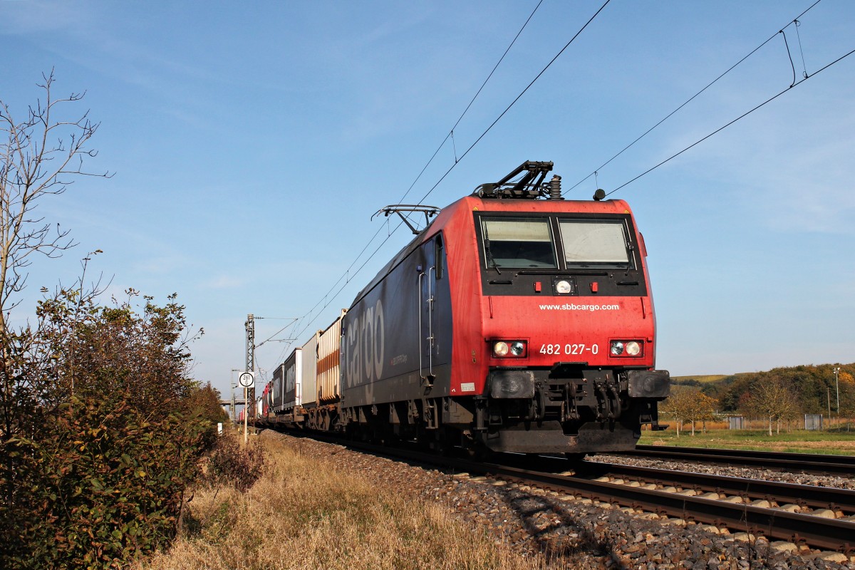 ES 64 F4-112 "SBB Cargo International" am 31.10.2014, als sie mit einem Containerzug in Richtung Basel südlich von Buggingen unterwegs war. Tobias Schmidt