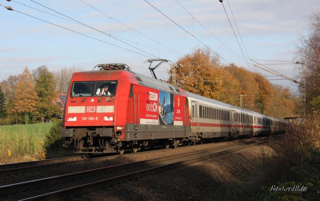 DB 101 013-1 (Baujahr 1997, Adtranz) schiebt IC 2320 Frankfurt (Main) Hbf. - Hamburg Altona, KBS 385 Münster - Bremen, fotografiert bei Hüde zwischen Lemförde und Diepholz am 17.12.2014 Frank Grohe