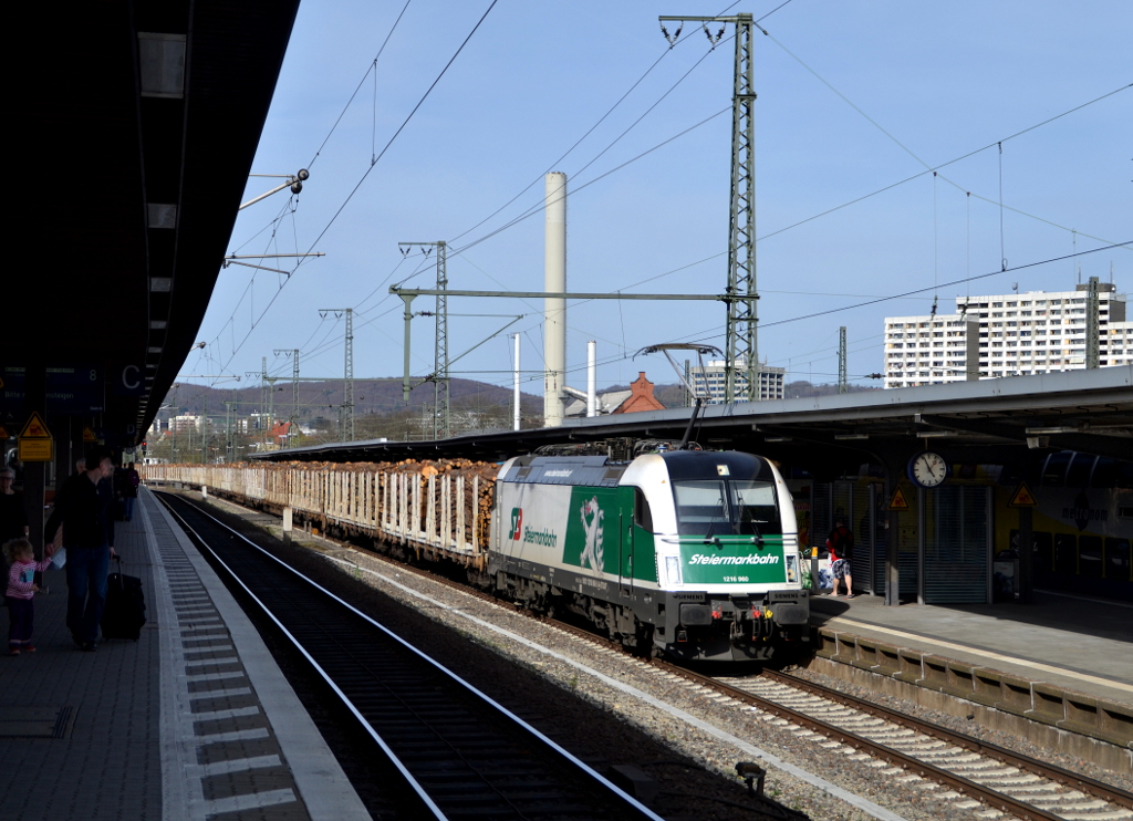 218 391 als Tfzf ( K ) 93398 Bremen Sebaldsbrück - Augsburg Rbf ( Sdl. ) am 13.04.2015 in Göttingen