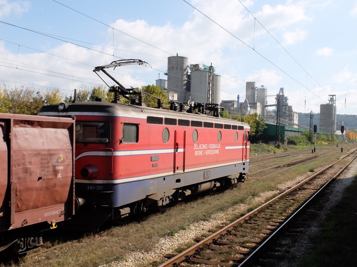 Güterzug mit ŽFBH 441-307 am 23. Oktober 2015 vor Zementfabrik Kakanj.