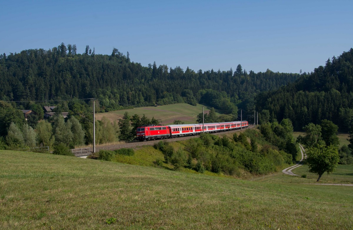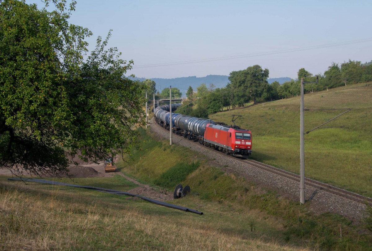 294 716 konnte ich bei glühender Hitze mit der Übergabe von Fichtenberg nach Stuttgart Hafen, am bekannten Fotopunkt, an der Murrbahn, bei Schleißweiler in Szene setzen.