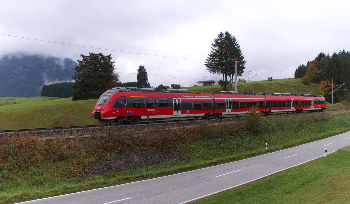 Der Wettergott bescherte mir leider kein schönes Geburtstagswetter. Der 08.10.2015 war trüb und grau, daher gingen wir den Tag ruhig an und begaben uns zur 250 Meter von unserem Ferienhaus entfernten Fotostelle. Die Schmalenseehöhe zwischen Mittenwald und Klais ist mit 960 Meter der höchste Punkt der Mittenwaldbahn auf deutscher Seite.
