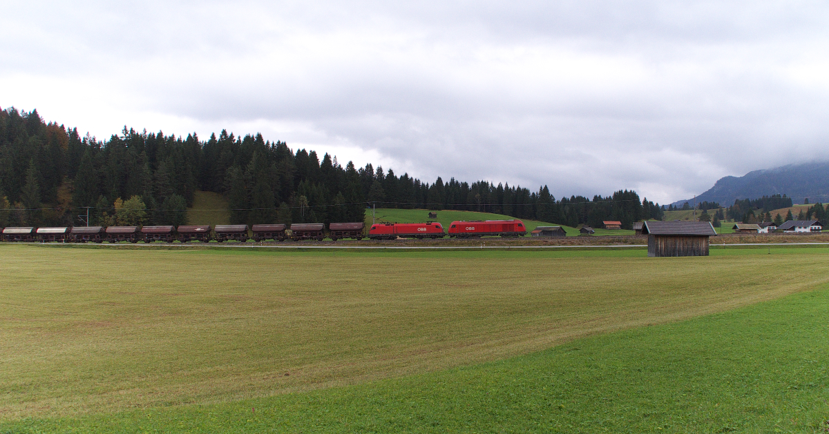 Der interessanteste Zug auf der Mittenwaldbahn ist der Güterzug von Vils Trol nach Hall in Tirol der zwischen Montag und Freitag unterwegs ist und meist genau im Plan.