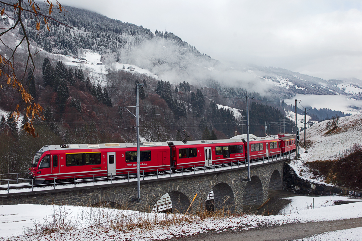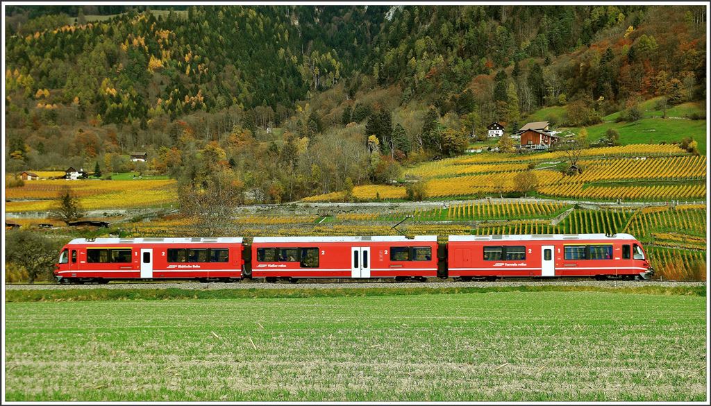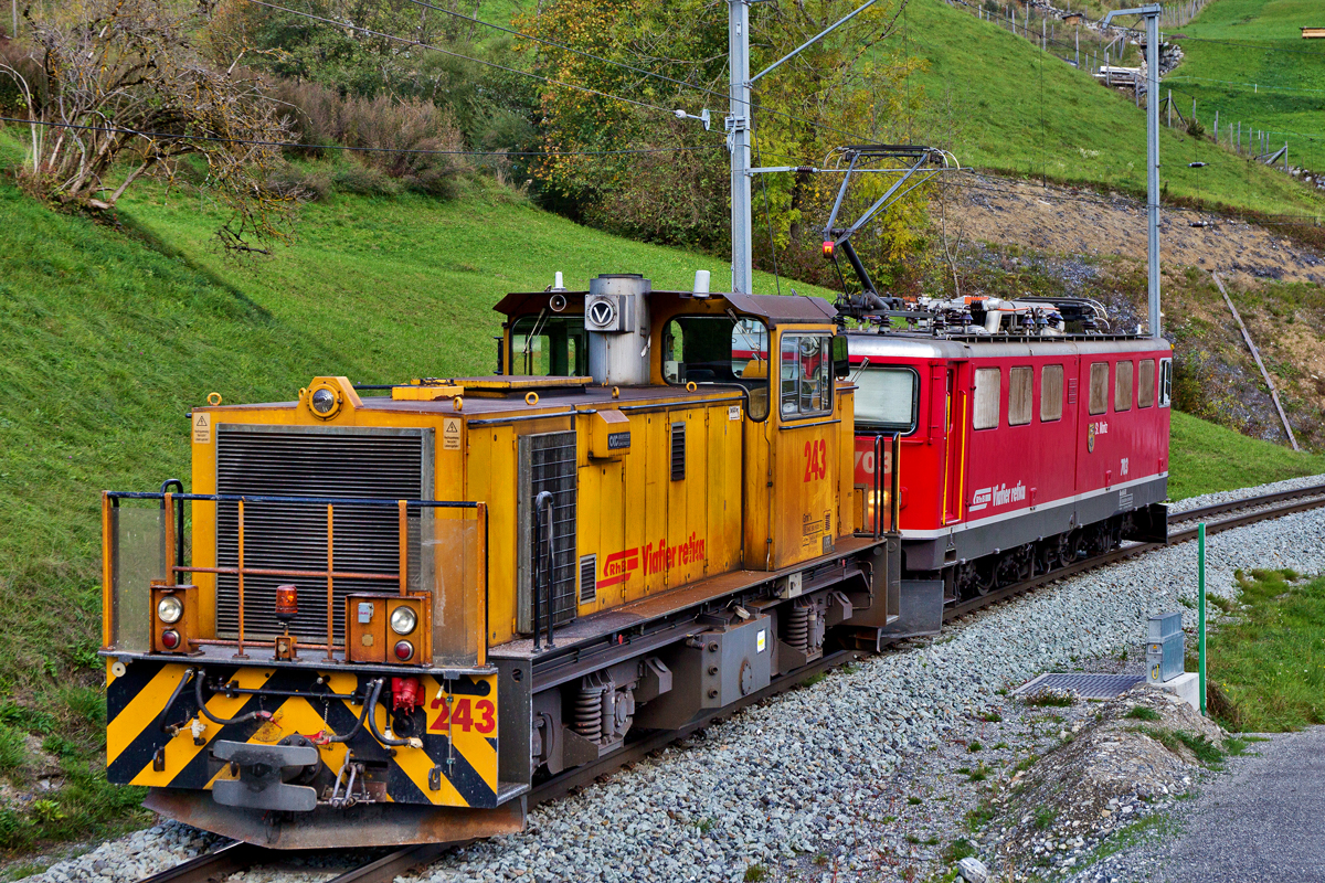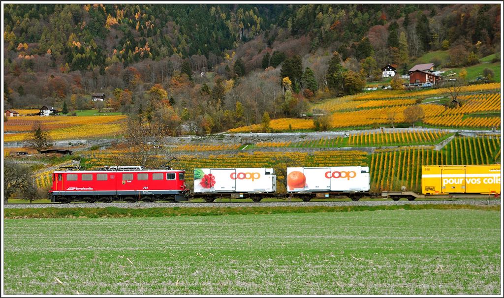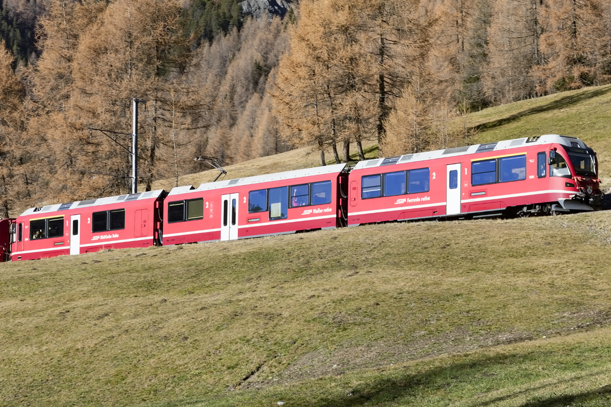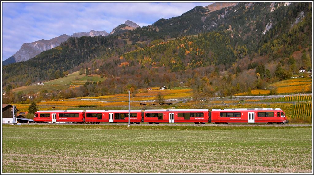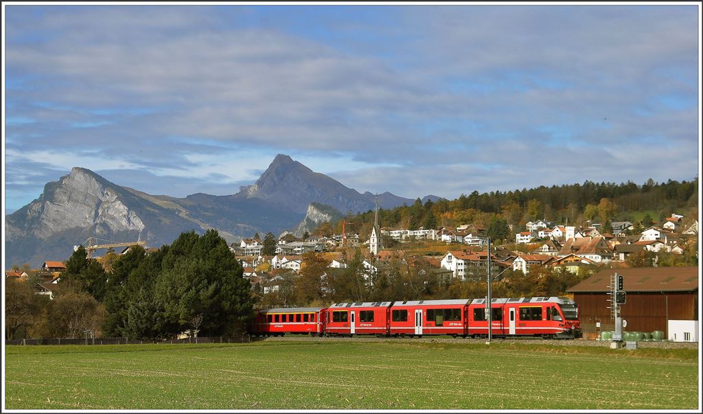 RE1240 mit Ge 4/4 II 628 "S-chanf" nach Disentis/Mustér legt vor dem kleinsten Bahnhofbuffet der Schweiz in Saas i/Prättigau einen kurzen Halt ein. (02.10.2015) Herbert Graf
