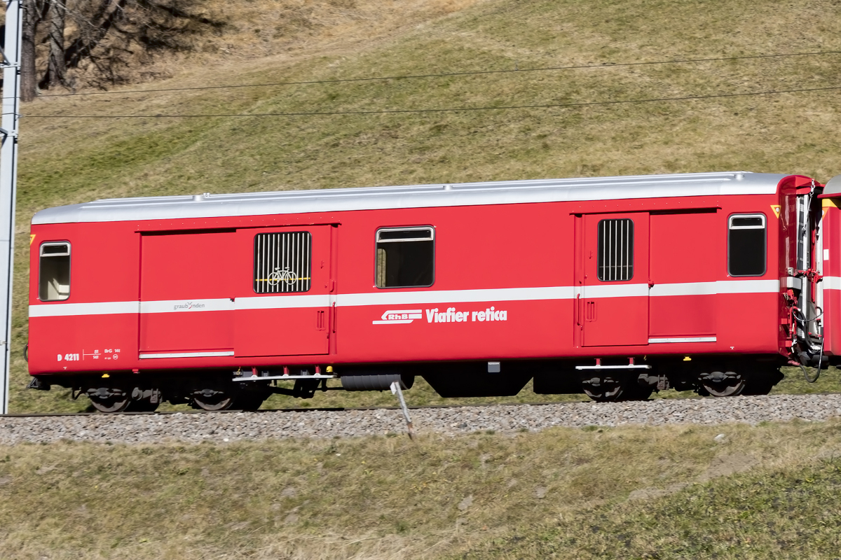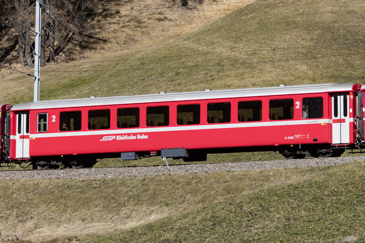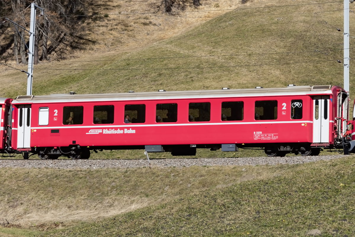 Anlässlich nach der 39.Generalversammlung ist der RhB Personenwagen WR-S 3821 "Stiva Retica" bei der grossen Rundfahrt vom 20.3.2015 im Re 1350 aus St.Moritz nach Landquart eingereiht.Bild in Saas Matti Morelli