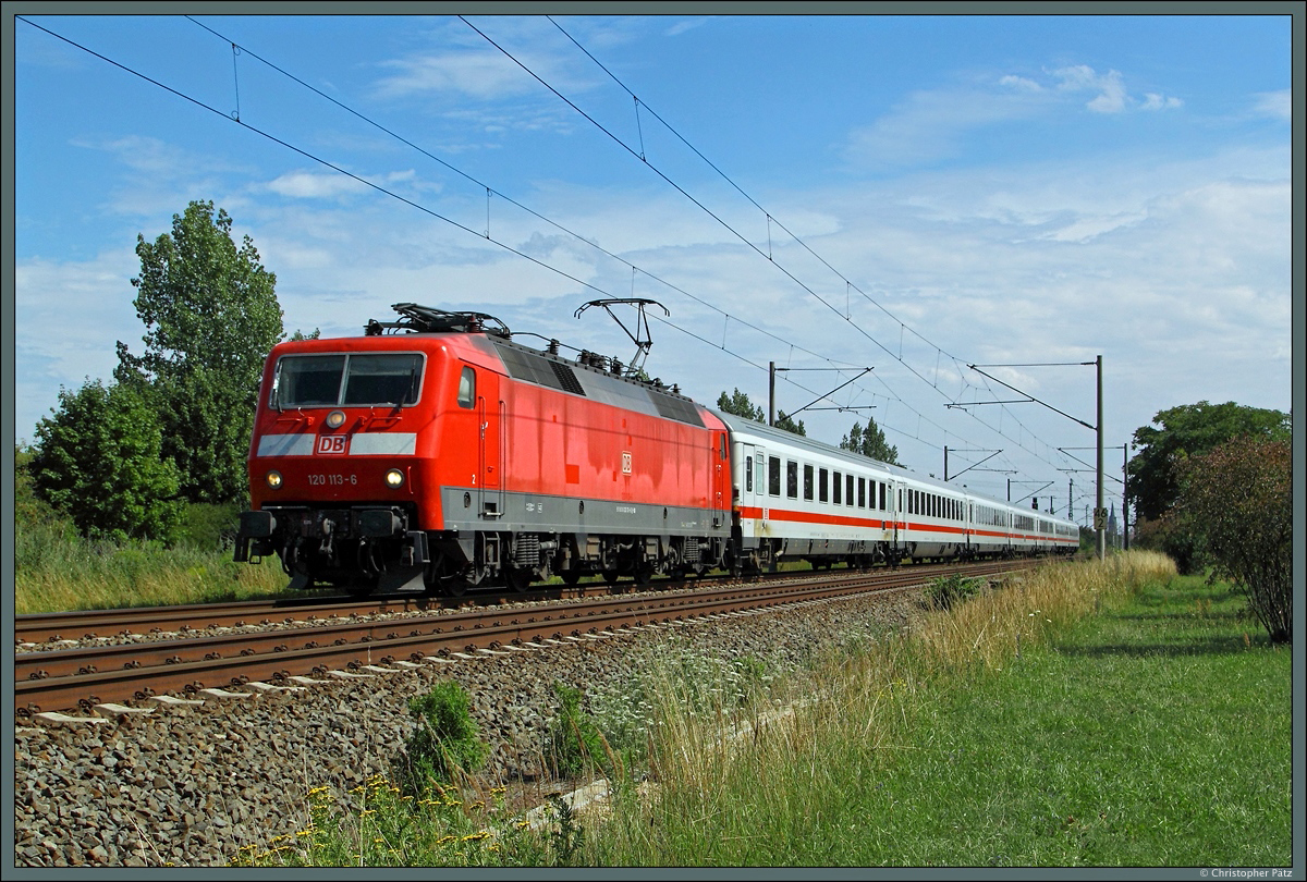 Der kurze Güterzug, den 132 255-0 am 01.08.2015 bei Jeßnitz Richtung Bitterfeld zieht, dürfte für die 3000PS-Maschine eine leichte Aufgabe sein. Christopher Pätz