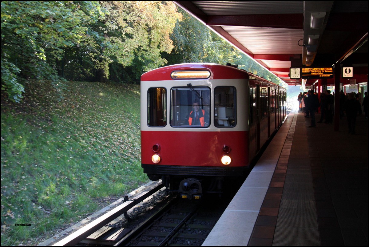 U-Bahn Gesellschaftszug "Hanseat" war am 11.10.2015 im Rahmen des verkehrshistorischen Tages im Sondereinsatz. Hier hat der Zug gerade seine Fahrgäste im Bahnhof Hagenbecks Tierpark aussteigen lassen und setzt nun um zur Gegenrichtung. Gerd Hahn