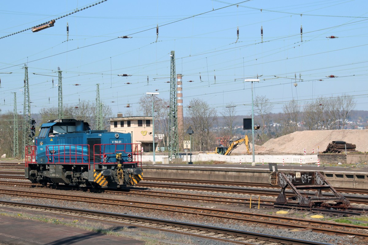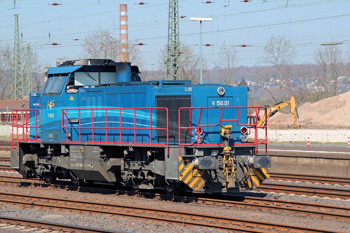 Heute entdeckt im Vorfeld des Hauptbahnhofes in Kassel (Foto entstand vom Bahnsteig aus): die V 150.01 (G 1206) der Hessischen Güterbahn (15.4.2015). Andreas Niedermeyer